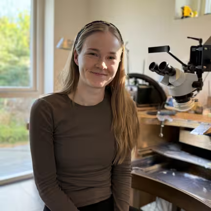 Vores dygtige guldsmedelærling Sara er i gang med at udvikle sine færdigheder, og hun glæder sig til at hjælpe dig/jer med dit/jeres næste smykkeprojekt.